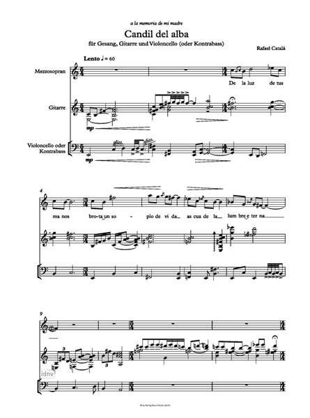 Candil del Alba für Gesang, Gitarre und Violoncello (oder Kontrabass) (2007)