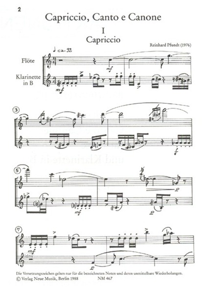 Capriccio, Canto e Canone für Flöte und Klarinette in B