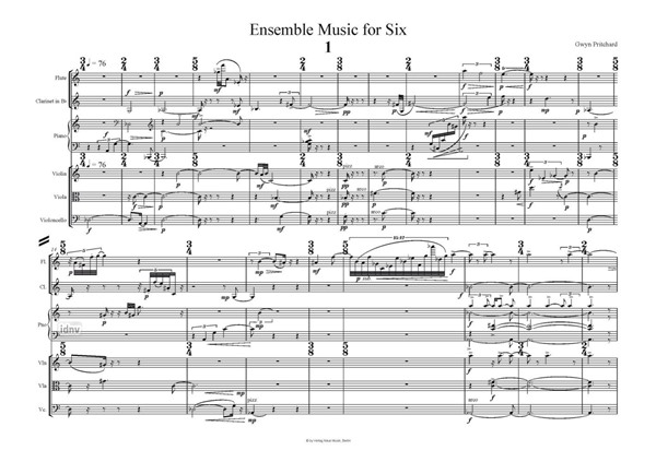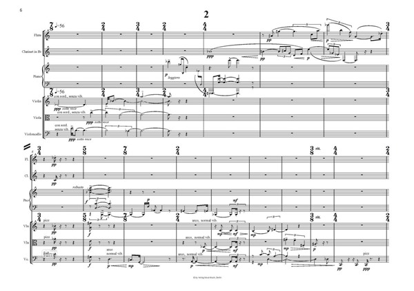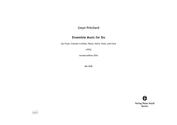 Ensemble Music for Six für Flöte, Klarinette, Klavier, Violine, Viola und Cello (1976/2016)