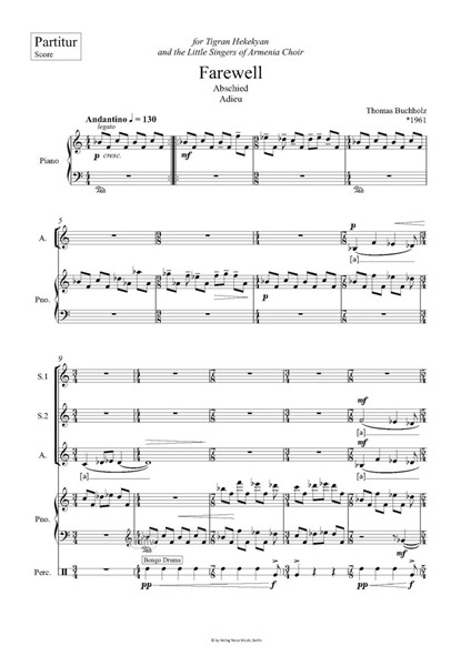 Farewell für Frauenchor, Klavier und Percussion (2021)