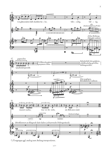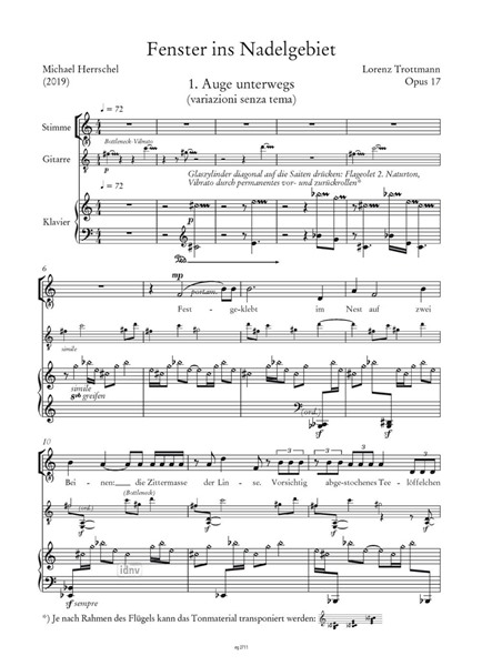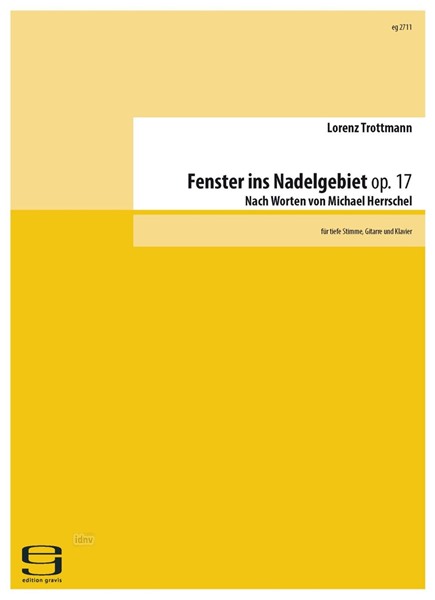 Fenster ins Nadelgebiet für tiefe Stimme, Gitarre und Klavier op. 17 (2019)Text: Michael Herrschel