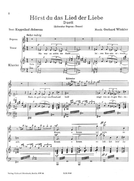 Hörst Du das Lied der Liebe für Koloratursopran und Tenor mit KlavierbegleitungDuett