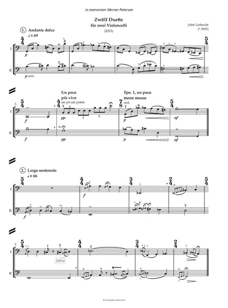 Zwölf Duette für zwei Violoncelli (2025)In memoriam Werner Petersen