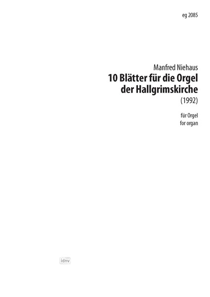 Niehaus, Manfred 10 Blätter für die Orgel der Hallgrimskirche für Orgel (1992) Organ 14,80 € (incl. VAT, plus shipping) Available