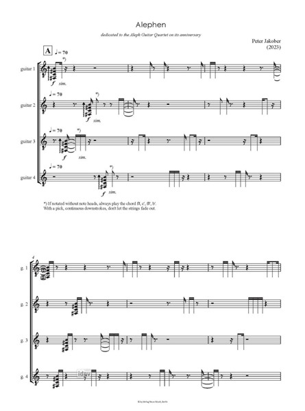 Alephen für Gitarrenquartett (2023)