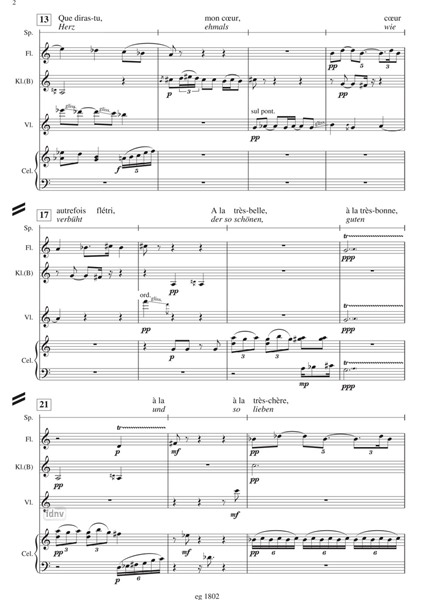 Baudelaire-Zyklus für Flöte, Oboe, Klarinette, Schlagwerk, Celesta, Violine und Sprecher (2008/09)