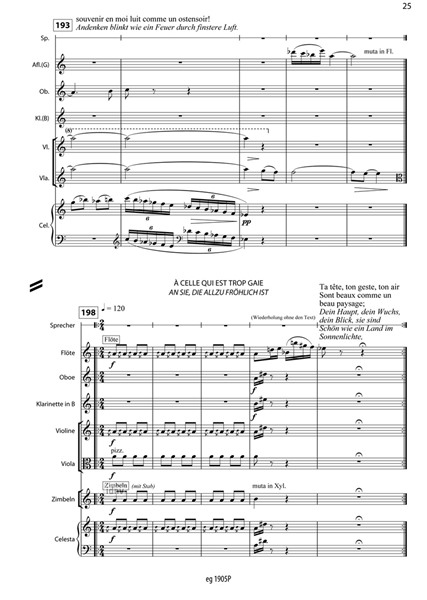 Sprecher, Flöte, Oboe, Klarinette, Violine, Viola, Schlagwerk, Celesta