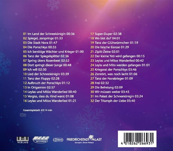 Die Kinderrevue „Die Schneekönigin“, frei nach den Motiven des Märchens von Hans Christian Andersen, entführt der Friedrichstadtpalast seine jungen Gäste von 5 bis 12 Jahren in die schillernde Welt der Schneekönigin.