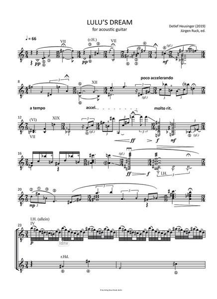 Lulu’s Dream entstand als Nachklang zu meiner Neufassung des 3. Aktes von Alban Bergs Oper Lulu, welche 2019 im Bremer Theater zur Uraufführung kam. Es ist gleichsam eine Transposition der Klangwelt Bergs in eine heutige, in die meinige Klangwelt. So wie Berg das Lautenlied des Textautors Frank Wedekind in seiner Adaption anklingen lässt, gibt es auch bei mir eine Überschreibung von zentralen Elementen der Lulu-Oper, so bei der rahmenden Zirkusmusik oder als Palimpsest der Überschreibung bei eben diesem Lautenlied. Jedoch gibt es zwischen den Versatzstücken kein Geländer, meine Musik mäandert durch einen fiktiven Traum Lulus, der – anders als es die Oper nahelegt