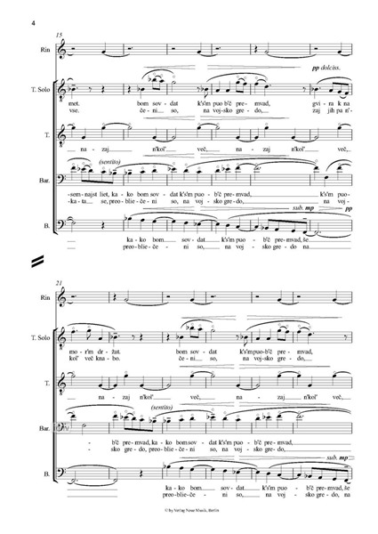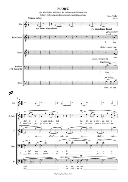 PUOB’C für Jodlerverein-Männerchor (oder 4 Solo-Männerstimmen) mit einer Klangschale (Rin) (2012)ein windisches Volkslied
