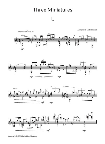 Die erste Miniatur ist lyrisch, ruhig, und harmonisch. Die zweite ist rhythmisch präzise und virtuos. Schließlich ist die letzte experimenteller, mit einem Hauch von Humor.“