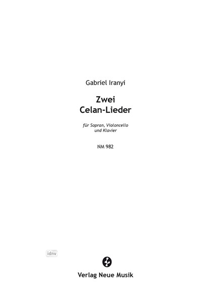 Zwei Celan-Lieder für Sopran, Violoncello und Klavier